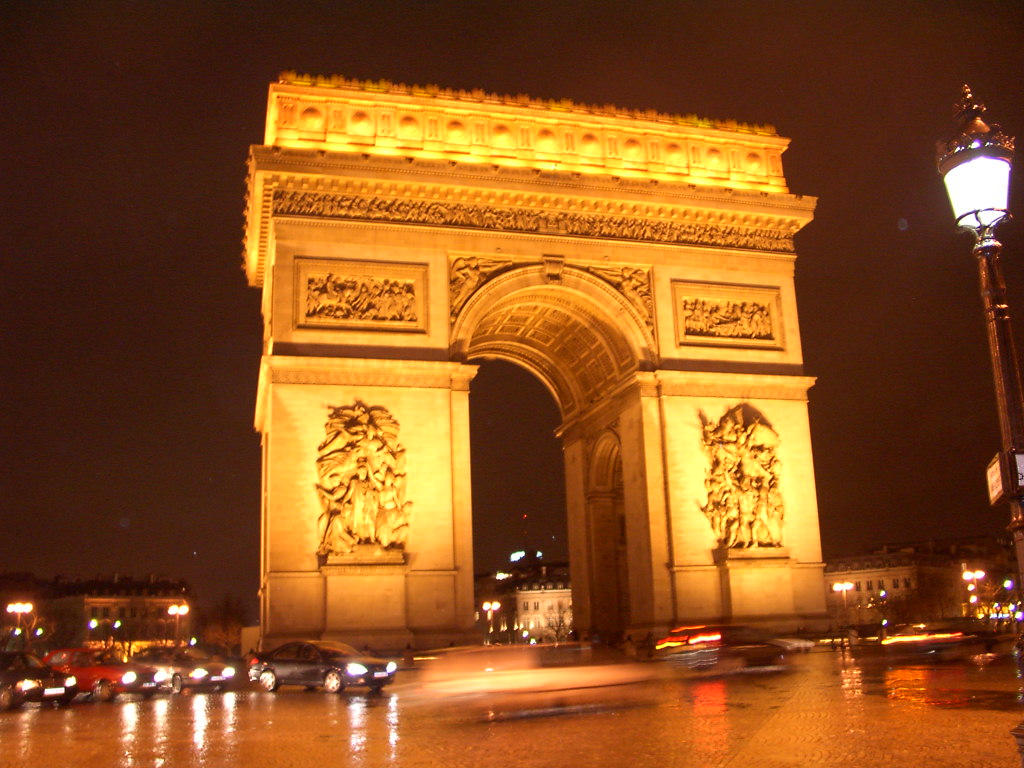 The least blurry of several nighttime shot of the Arce de Triumphe.