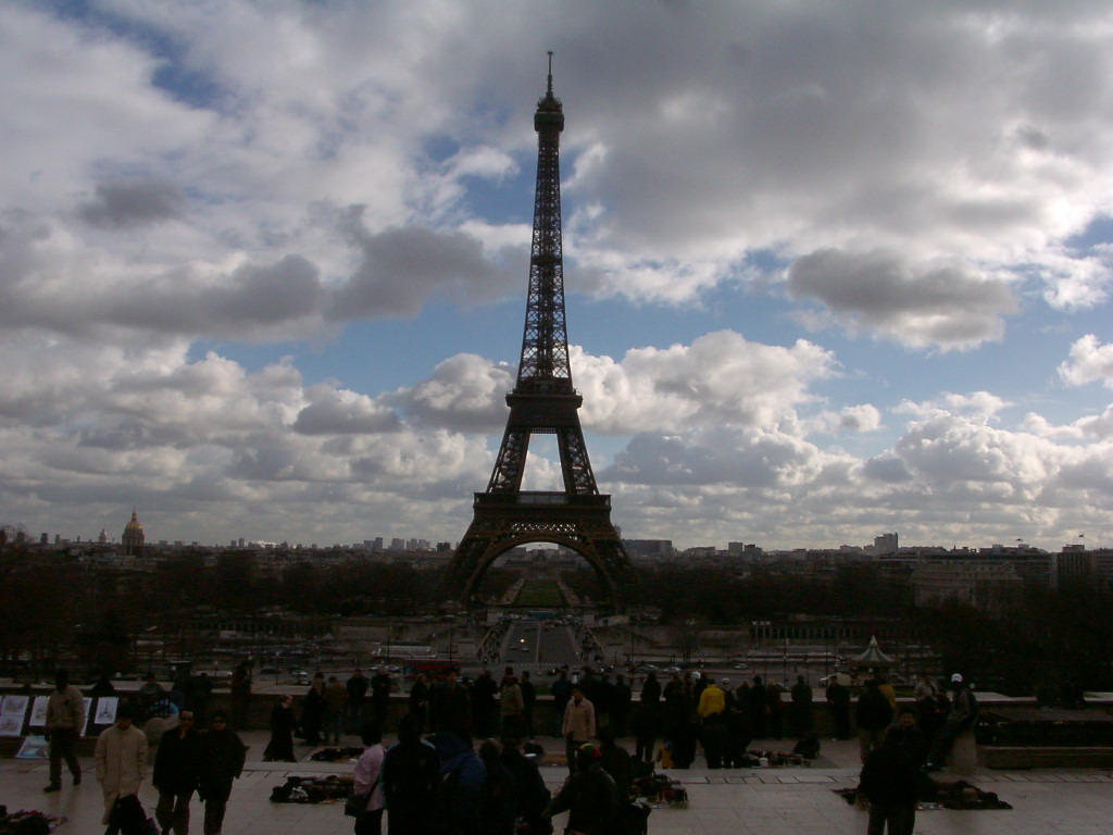A daytime (though clouding) shot of the tower from the same location as the night before.