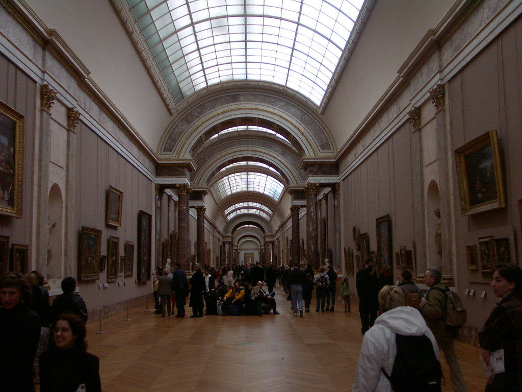 One of the long hallways lined with art at the Louvre. This is from the middle facing west.